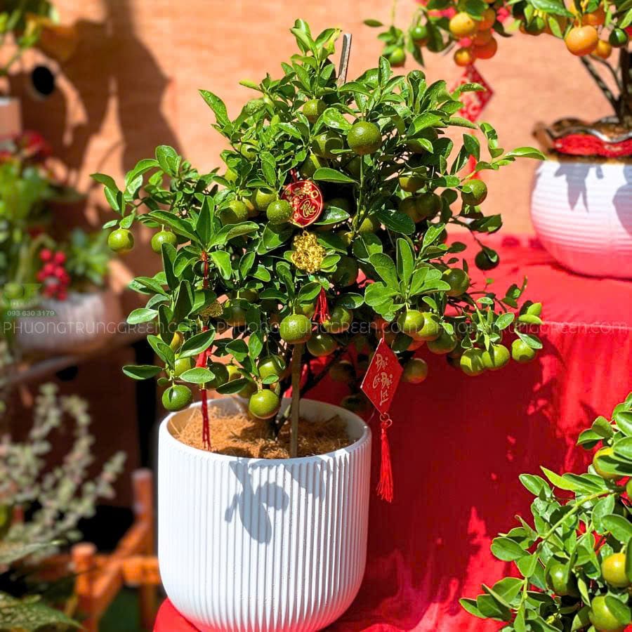 Cây quất (tắc) từ lâu đã trở thành biểu tượng không thể thiếu mỗi dịp Tết Nguyên Đán. Phiên bản quất để bàn được trồng trong chậu nhỏ hoặc chậu sứ, chiều cao vừa phải, phù hợp đặt trên bàn tiếp khách, bàn làm việc, quầy lễ tân hoặc kệ trang trí.