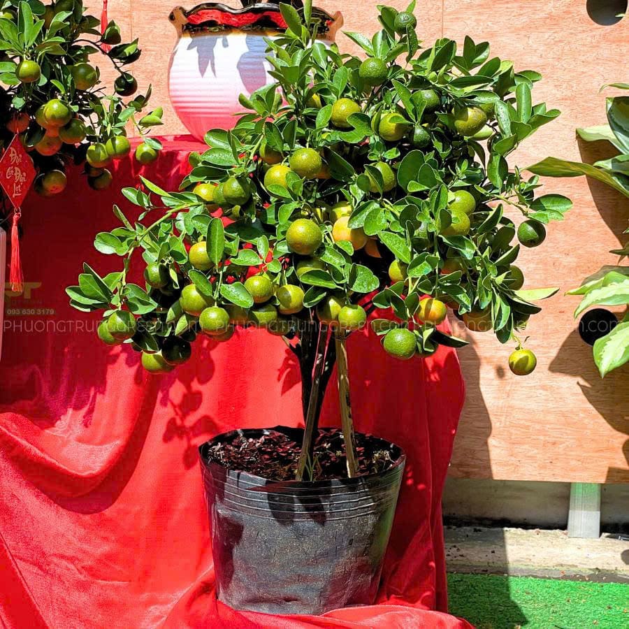 - Cây được chăm sóc kỹ, trái phân bố đều quanh tán, lên màu đẹp đúng dịp Tết.