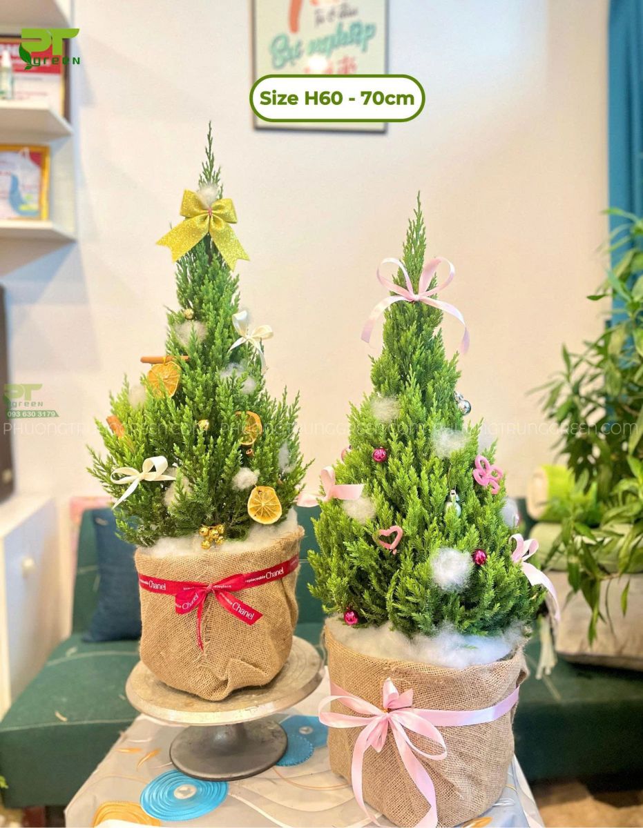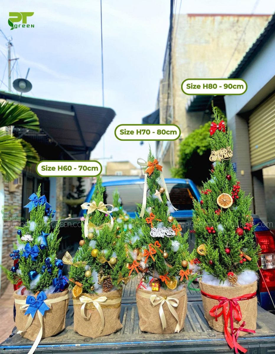 Bên cạnh các mẫu cây Sơn Tùng Noel Mini, PT Green còn cung cấp cây thông thật kích thước lớn khoảng 1m4 – 1m5, phù hợp cho các không gian cần điểm nhấn mạnh như: