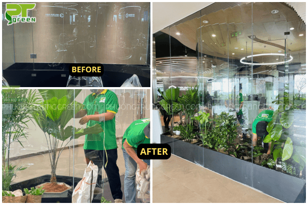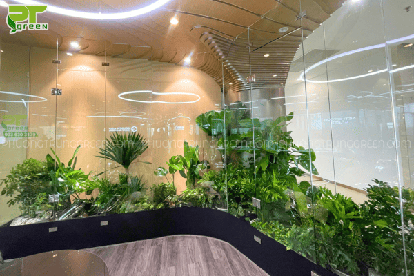 Qua khảo sát thực tế, PT Green đề xuất áp dụng giải pháp thiết kế – thi công tiểu cảnh cây nội thất, sử dụng các dòng cây phù hợp môi trường trong nhà như:
