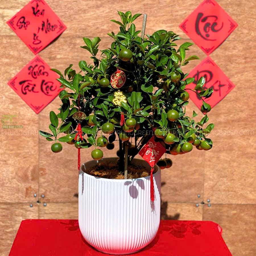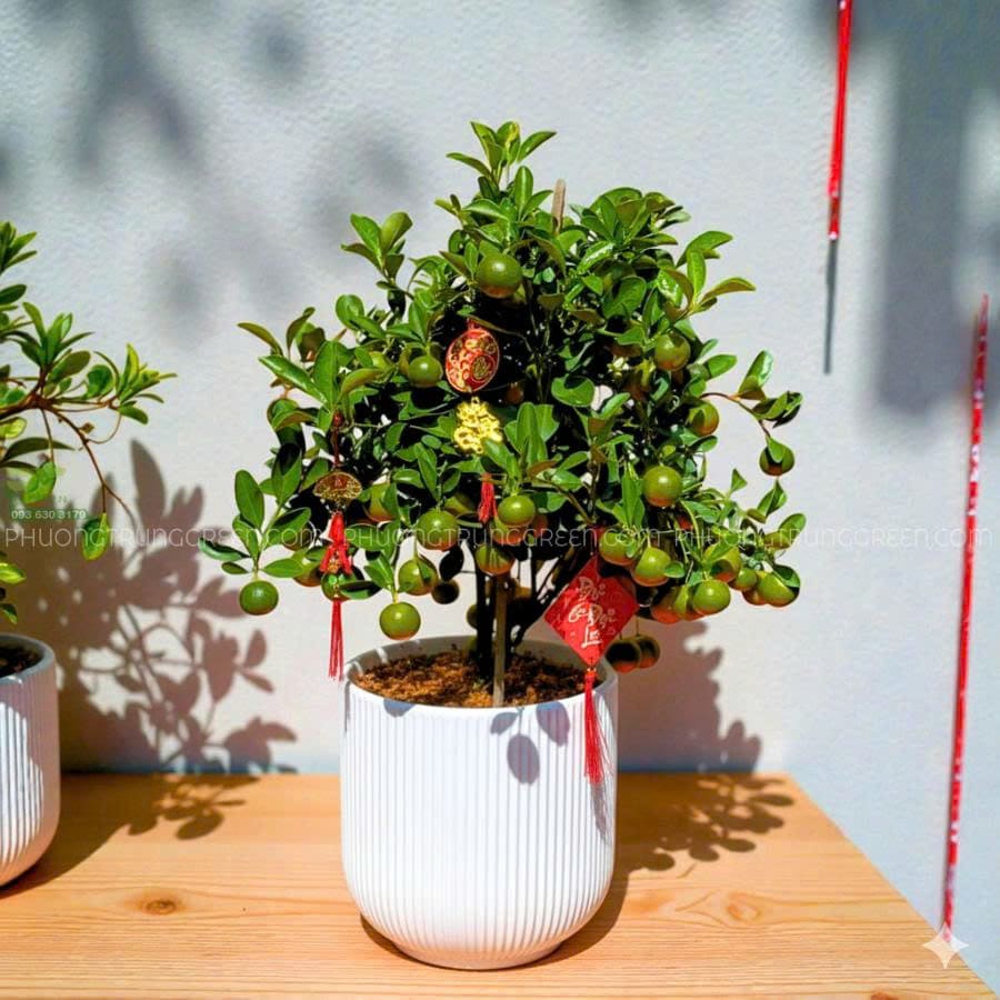 Cây quất (tắc) từ lâu đã trở thành biểu tượng không thể thiếu mỗi dịp Tết Nguyên Đán. Phiên bản quất để bàn được trồng trong chậu nhỏ hoặc chậu sứ, chiều cao vừa phải, phù hợp đặt trên bàn tiếp khách, bàn làm việc, quầy lễ tân hoặc kệ trang trí.