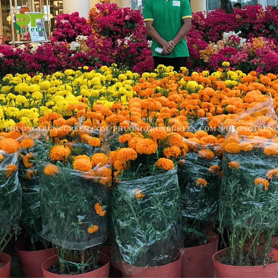 Bông vạn thọ (còn gọi là cúc vạn thọ) là một trong những loài hoa Tết truyền thống không thể thiếu trong mỗi gia đình Việt mỗi dịp xuân về. Với sắc vàng – cam rực rỡ, dáng cây khỏe khoắn, hoa tròn đều và nở bền, cúc vạn thọ tượng trưng cho trường thọ, phúc lộc và sự sung túc, rất được ưa chuộng để trưng trước nhà, sân vườn, cổng hoặc khu vực thờ cúng trong ngày Tết.