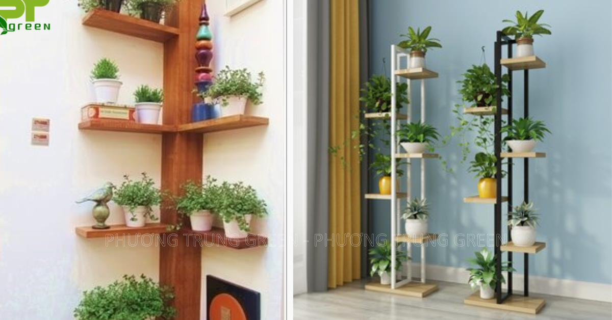 Thiết kế giá đứng có tầng để trưng bày các chậu cây