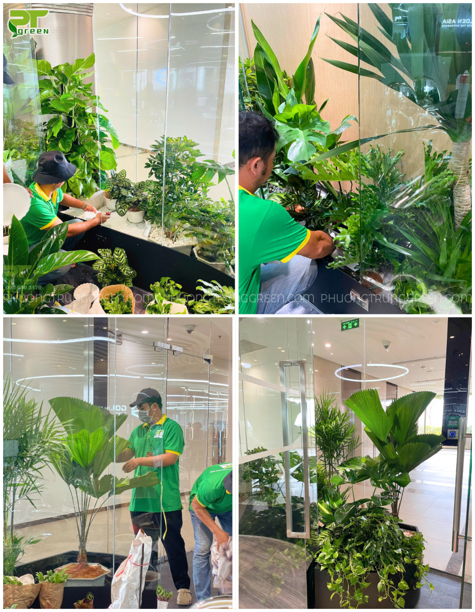 Qua khảo sát thực tế, PT Green đề xuất áp dụng giải pháp thiết kế – thi công tiểu cảnh cây nội thất, sử dụng các dòng cây phù hợp môi trường trong nhà như: