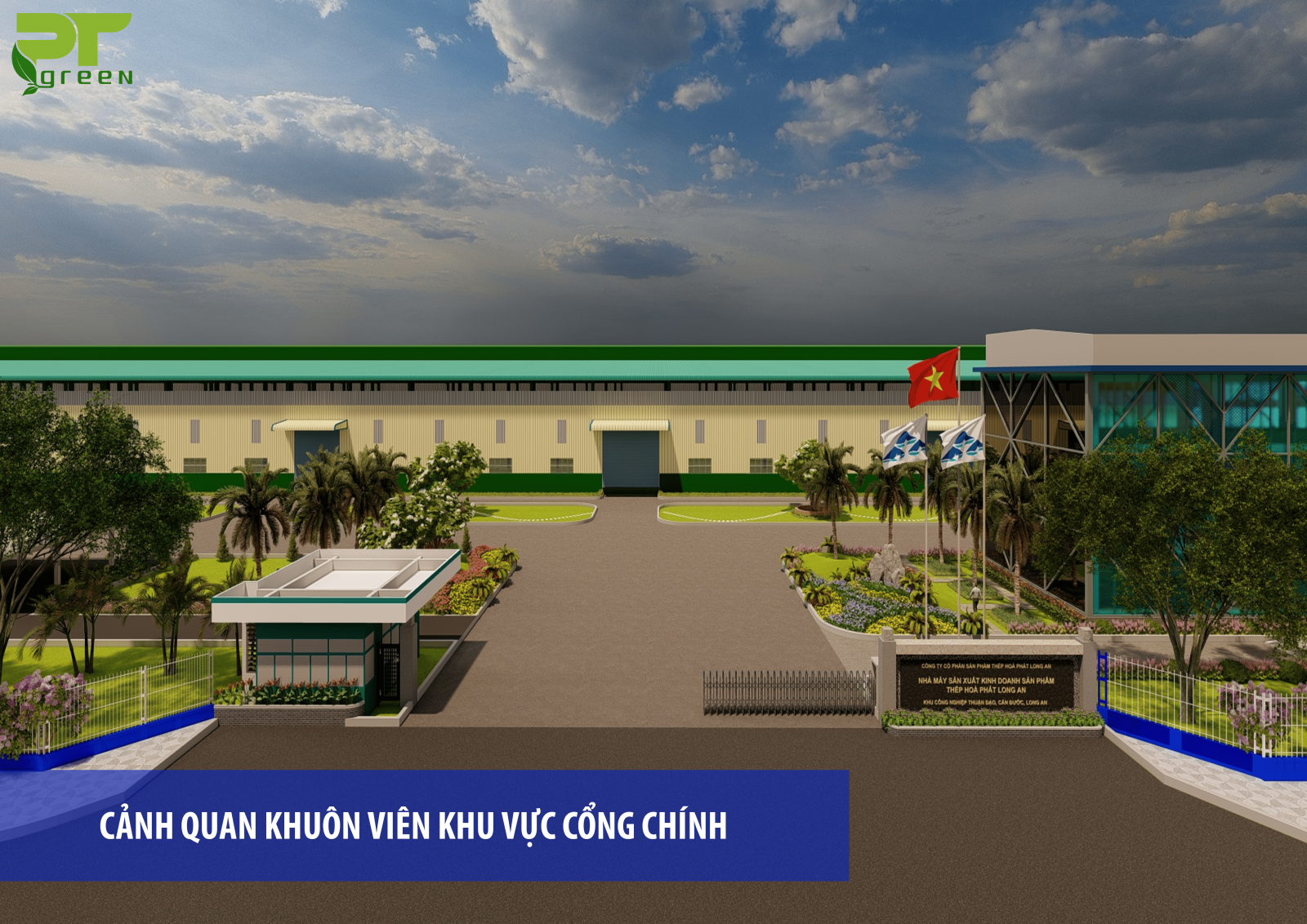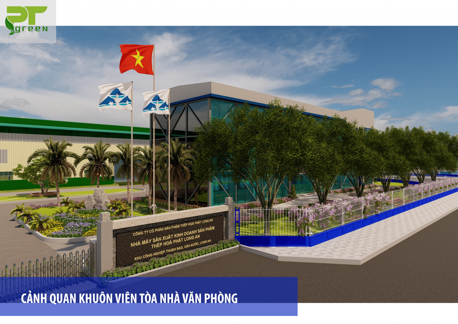 PT Green tự hào được Công ty Cổ phần Sản phẩm Thép Hòa Phát Long An tin tưởng lựa chọn trong hạng mục thiết kế cảnh quan 3D toàn khuôn viên, mang đến một không gian làm việc hiện đại, hài hòa và tràn sức sống.