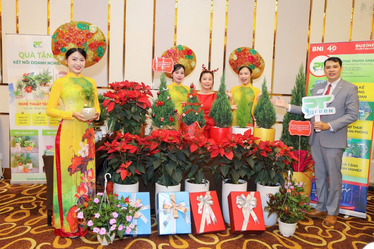 Ngày 11/11 vừa qua, PT Green đã góp mặt tại Ngày hội Sản phẩm Quà tặng – BNI, mang đến không gian trưng bày rực rỡ sắc xanh với điểm nhấn là Cây Tùng Noel, cây Trạng Nguyên và các mẫu quà tặng doanh nghiệp xanh. Sự kiện không chỉ là dịp giao lưu kết nối giữa các doanh nhân mà còn là cơ hội để PT Green lan tỏa thông điệp “Xanh trong từng khoảnh khắc – Kết nối bằng giá trị bền vững”.
