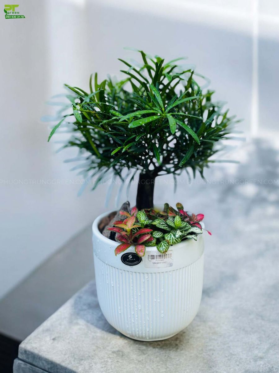 Chậu Tùng Kim Cương được thiết kế nhỏ gọn, thích hợp để bàn với kích thước chậu 10x10 cm và chiều cao tổng thể từ 20-25 cm. Sản phẩm này chưa bao gồm phí vận chuyển, nhưng bạn sẽ nhận được chất lượng cây cảnh tốt nhất cùng sự hỗ trợ tận tình từ đội ngũ PT Green.